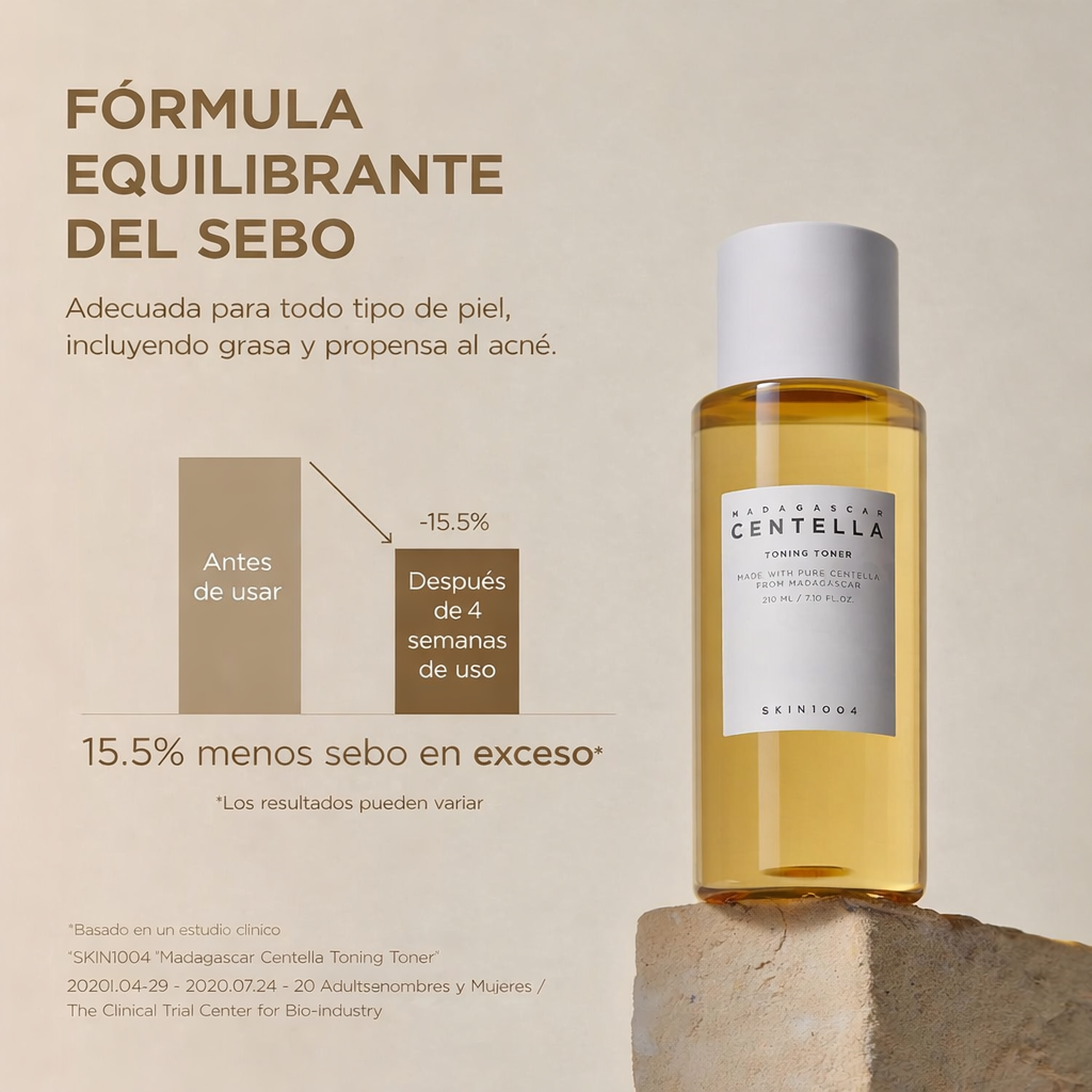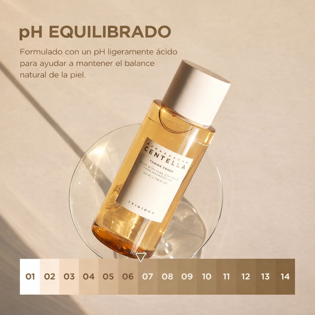 Este tónico de Centella de Madagascar incorpora PHA, un exfoliante suave que ayuda a eliminar células muertas, refinando la textura de la piel sin causar irritación y manteniéndola suave, clara y equilibrada.